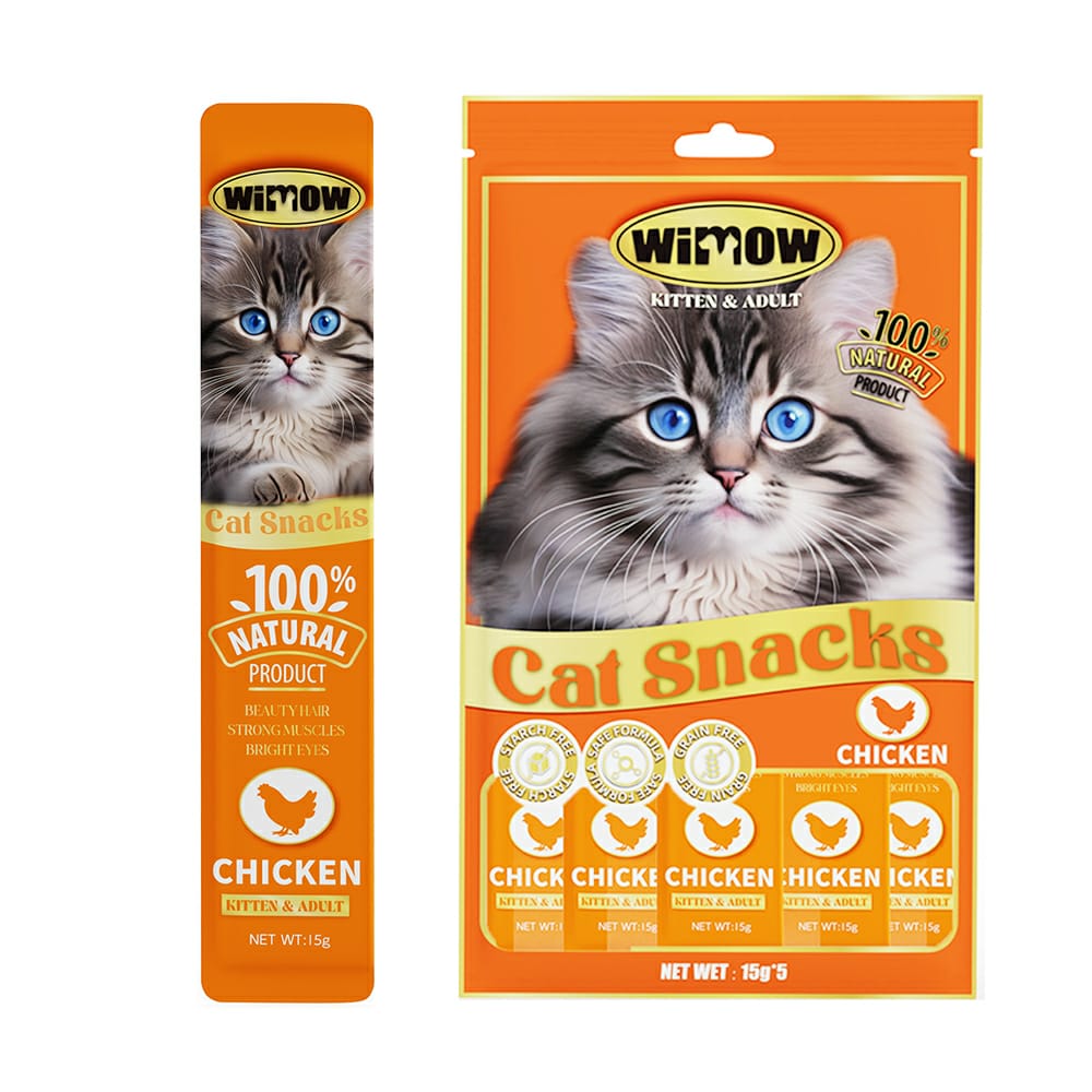 Wimow Cat Snacks are delicious chicken-based treats specially made for both kittens and adult cats. Packed with natural ingredients, these treats not only taste great but also contribute to your cat’s overall health and well-being.
