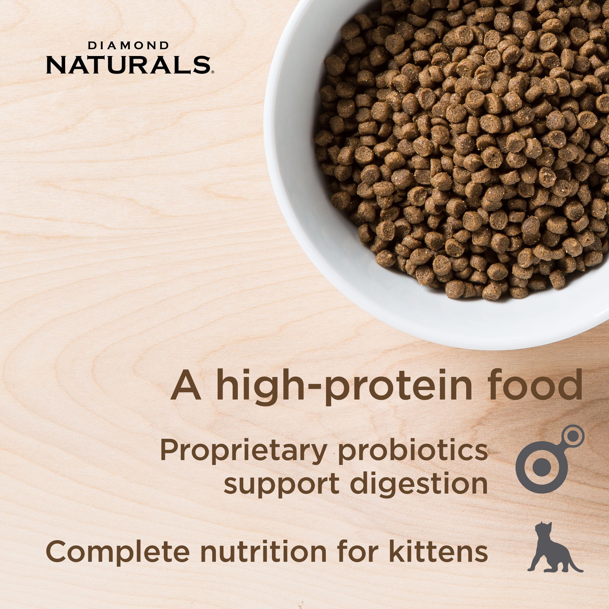 Diamond Naturals Kitten Chicken & Rice Formula is formulated to meet the nutritional levels established by the AAFCO Cat Food Nutrient Profiles for All Life Stages.